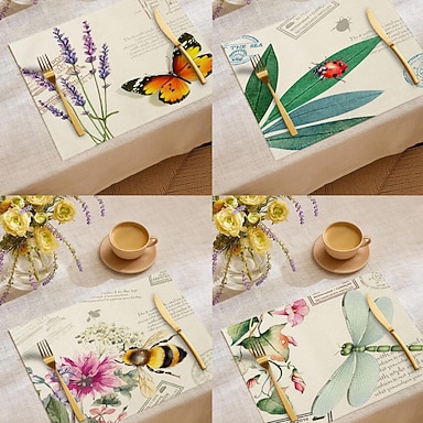 Tischset aus Stoff mit Blumen- und Schmetterlingsmotiv für alle Jahreszeiten, rechteckiges Tischset aus 100 % gewebtem Polyester, maschinenwaschbar, strapazierfähig und hitzebeständig.