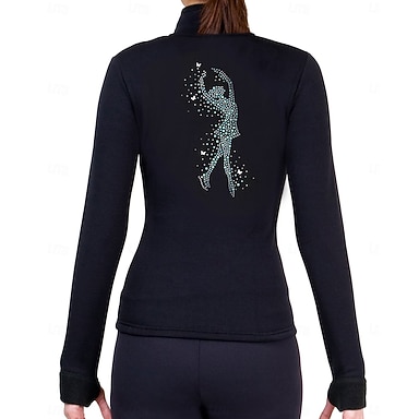 Fleecejacke fürs Eiskunstlaufen Damen Mädchen Eislaufen Jacke Shirt Schwarz Daumenloch elastisch Ausbildung Wettbewerb Eiskunstlaufkleidung warm Kristalle Langarm Eislaufen Eiskundstlauf