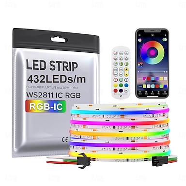 RGB Smart IC COB LED-Lichtstreifen, adressierbar, 5 m, 12 V, farbiges, fließendes Lichtband, mehrfarbig, flexibles Lichtband mit App-Steuerung/Musikmodus für TV, Schlafzimmer, Party, DIY-Dekoration