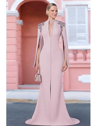 Meerjungfrau Trompete Abend Sweep Pinsel Zug Formelle Kleider Abendkleid Abendkleid Elegantes Vintage Langarm V-Ausschnitt Formal mit Kristallen Perlenbestickung