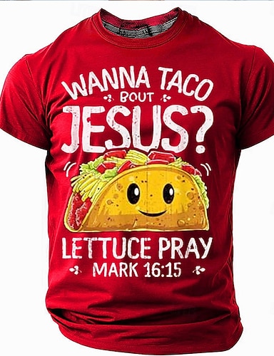 Herren Bibel Lustig Christlich Grafik T-Shirt - 'Wanna Taco Bout Jesus Lettuce Pray' Wortspiel-Design mit Markus 16:15 Kurzarm