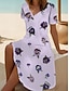 Ostern Damen Midikleid Sommerkleid T-Shirt-Kleid A Linie Kleid Urlaub Lässig Boho Strand Ausgehen Normale Passform Blumen Grafik Kurzarm V Ausschnitt Violett Purpur Sommer Frühling