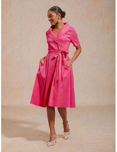 Damen Minikleid A Linie Kleid Figurbetontes Kleid Elegant Hochzeitsgast Cocktailparty Vorderknoten Normale Passform Einfarbig Kurzarm V Ausschnitt Fuchsie