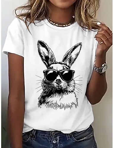 Ostern Damen T Shirt Druck Grafik Tiermotiv Stilvoll Klassisch Lässig Kurzarm Rundhals Normale Oberteile Täglich Blau Schwarz Weiß Purpur Sommer Frühling
