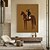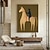 Originale Rennpferd-Wandkunst, beige abstrakte Pferdefigur, minimalistisches Gemälde auf brauner Leinwand, Vintage-Wandkunst, neutrale Wohndekoration
