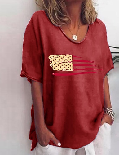 Unabhängigkeitstag Patriotische Damen Bluse Grafik Flagge Vintage Stylisch Lässig 3/4-langer Ärmel V-Ausschnitt Reguläre Oberteile Alltag Weiß Rot Blau Sommer Frühling