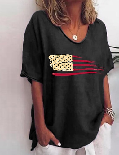 Unabhängigkeitstag Patriotische Damen Bluse Leinenähnlich Grafik Flagge Bohemia Vintage Tropisch 3/4 Länge Ärmel Crew Neck Reguläre Tops Täglich Urlaub Freizeitmode Druck Schwarz Rot Grau Sommer
