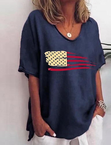 Unabhängigkeitstag patriotische Damen Bluse Grafik Flagge elegant stilvoll lässig 3/4 Länge Ärmel V-Ausschnitt reguläre Oberteile täglicher Feiertag Ausgehen Druck Marineblau Sommer Frühling