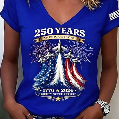Amerikanischer Unabhängigkeitstag Damen Bluse Druck Flagge Vintage Stilvoll Lässig Langarm V Ausschnitt Normale Oberteile Lässig Täglich Blau Rote Sommer Frühling