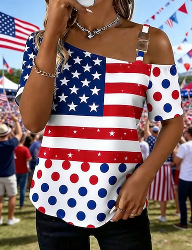 Amerikanischer Unabhängigkeitstag Damen T Shirt T-Shirt Druck Grafik Gestreift Amerikanische Flagge Stilvoll Klassisch Lässig Kurzarm Rundhalsausschnitt Normale Oberteile Täglich Sport Ausgehen Rote