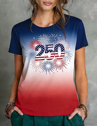 Amerikanischer Unabhängigkeitstag Damen T Shirt T-Shirt Druck Grafik Gestreift Amerikanische Flagge Stilvoll Klassisch Lässig Kurzarm Rundhalsausschnitt Normale Oberteile Täglich Sport Ausgehen Rote