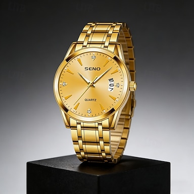 Luxuriöse Herren-Armbanduhr in Gold, Quarzwerk, eleganter Business-Stil, Edelstahlarmband, Datumsanzeige, wasserdicht, stilvolles Geschenk für Väter und Ehemänner