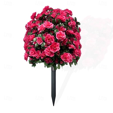 Künstliche Azalee mit Erdspießen, 58 cm lange, UV-beständige künstliche Azalee als Gartenstecker, künstliches Grün für Veranda, Terrasse, Hochzeiten, Partys – langlebig und einfach zu installieren.