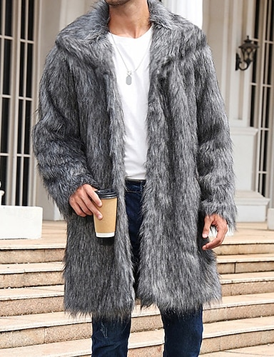 Herren Freizeitjacke Kunstpelzmantel Lässig Täglich Plüsch Herbst Winter Einfarbig Streetwear Täglich Umlegekragen Lang Silber Schwarz Weiß Braun Dunkelgray Jacken