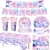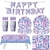 Partyzubehör im Stil koreanischer Popstars, für 76 Personen, inklusive Teller, Becher, Servietten, Gabeln und Tischdecke &Happy Birthday-Banner, lila Pop-Themen-Geburtstagsgeschirr-Set für Kinder,