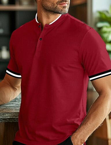 Herren Poloshirts Kragenlose Golfshirts Lässig Stehkragen Kurzarm Basic Bequem Einfach Knöpfe Sommer Frühling Normale Passform Schwarz Weiß Rote Poloshirts