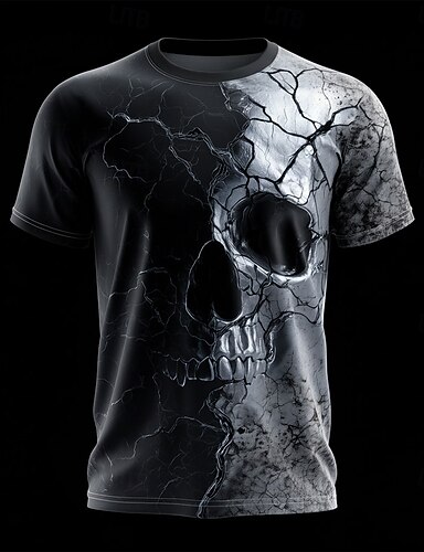 Herren Schädel Optische Täuschung 3D T Shirt Kurzarm T-Shirt 3D-Druck Rundhalsausschnitt Hemd Übertrieben Designer Party Täglich Ferien Silber Dunkelgray Grau Sommer Frühling Ganzjahres Bekleidung S