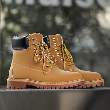 Robuste braune Schnürstiefeletten für Herren mit gepolstertem Schaft, strapazierfähiger Outdoor-Arbeitskleidungsstil zum Wandern, Bauen und für lässige Streetwear