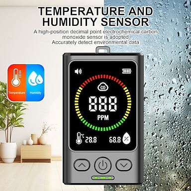 6-in-1-Luftqualitätsmonitor CO2 Multifunktionaler Kohlendioxid-Pegelregler CO2-Alarmmessgerät für den Innenbereich für das Home-Office-Auto-Fitnessstudio Weiß
