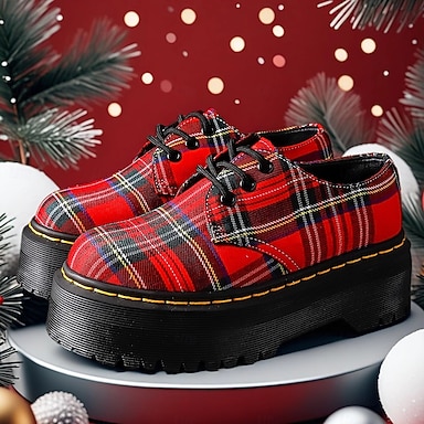 Rote Herren-Sneaker mit Karomuster – trendiges Design und bequeme Passform, perfekt für Ausflüge am Weihnachtstag und ungezwungene Treffen in der Weihnachtszeit.