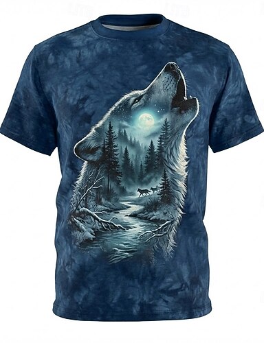 Heulender Wolf, Mond, Wald – 3D-Grafik-T-Shirt für Herren, blau, Batik, Natur, Wildnis, Kurzarm, Größen S, M, L, XL, XXL, XXXL