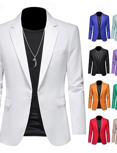 Herren Abschlußfeier Blazer Geschäft Cocktailparty Hochzeitsfeier Mode Lässig Frühling Herbst Polyester Einfach Tasche Knöpfe Bequem Einreihig Blazer Schwarz Weiß Rote Kaki