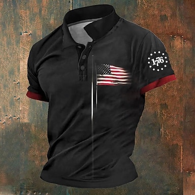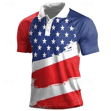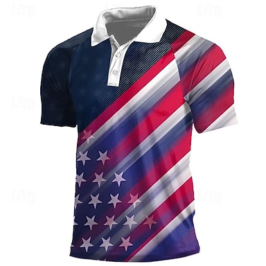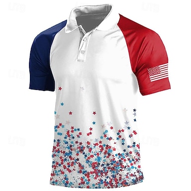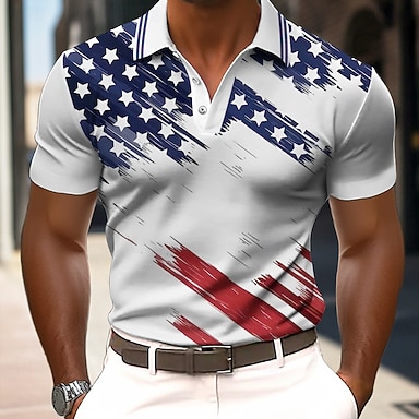 4. Juli 2026 250. Herren Amerikanische Flagge Veteranen Golfshirt Kurzarm Polo-Shirts Hemden mit Kragen Lässig Streetwear Urlaubskleidung Party-Outfits 3D-Druck Knöpfe Sommer Weiß