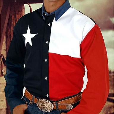 Herren 250. Jahrestag des Unabhängigkeitstages der USA am 4. Juli Amerikanische Flagge Westernhemd Knopfhemd Cowboy-Shirt Langarm Western Täglich Herbst Winter Umlegekragen Hemden mit Kragen 3D-Druck
