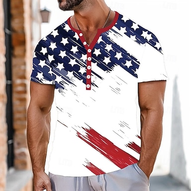 4. Juli 2026 250. Jahrestag Memorial Day Herren Vintage Retro Designer Henley Kurzarm T-Shirt Freizeit Tagesstraß