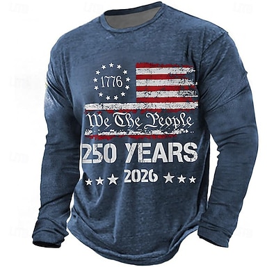 Herren Amerikanische US-Flagge 250. Jahrestag des Unabhängigkeitstages der USA am 4. Juli Patriotisch Strandhemd Knopfhemd Langarm Hawaiianisch Täglich Urlaub Straße Frühling & Sommer Herbst Winter