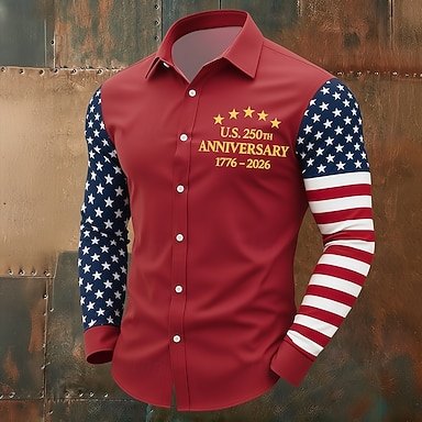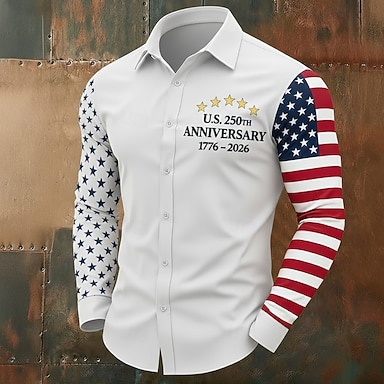 Amerikanischer Unabhängigkeitstag Herren 250. Jahrestag des Unabhängigkeitstages der USA am 4. Juli Amerikanische Flagge Nationalflagge Hemd Knopfhemd Langarm Lässig Alltagskleidung Ausgehen Frühling