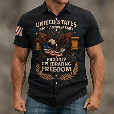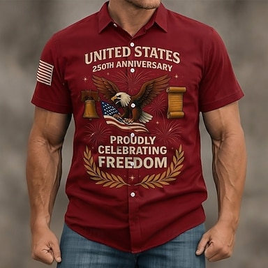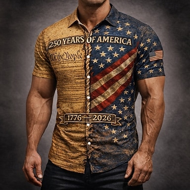 Amerikanischer Unabhängigkeitstag Herren Flagge 250. Jahrestag des Unabhängigkeitstages der USA am 4. Juli Amerikanische Flagge Knopfhemd Bedruckte Hemden Kurzarm Lässig Täglich Urlaub
