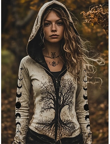 Damen Hoodies mit Reißverschluss Grafik Aktiv Vintage Ethnisch Langarm Mit Kapuze Normale Oberteile Heim Lässig Sport Reißverschluss Purpur Braun Hell Gray Dunkelgray Herbst Winter