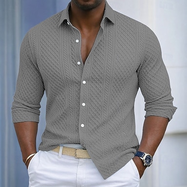Herren Hemd Freizeithemd Knopfhemd Jacquard-Hemd Schwarz Weiß Kaki Grau Leicht Blau Langarm Einfach Hemdkragen Lässig Täglich Bekleidung Elegant Mode Lässig
