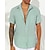 Herren Hemd Freizeithemd Knopfhemd Blau Schwarz Weiß Braun Aprikose Kurzarm Einfarbig Einfach Großvaterkragen Lässig Täglich Kordelzug Bekleidung Elegant Mode Lässig