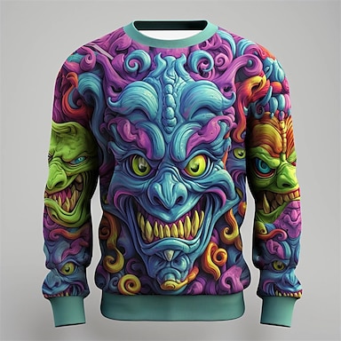 Herren Grafik Cartoon Monster Sweatshirts Golf-Pullover Langarm Sweatshirt Rundhalsausschnitt Mode Täglich Lässig 3D-Druck Urlaub Ferien Ausgehen Druck Frühling & Herbst