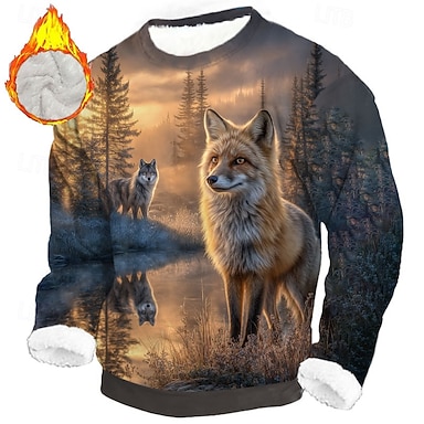 Herren Fuchs Wolf 3D-Druck Fleece Pullover Täglich Lässig Fantasie Rundhalsausschnitt Heim Party Geschenk Streetwear Blau 1 Blau 2# Braun 3D-Druck Herbst Winter Designer S M L XL XXL XXXL