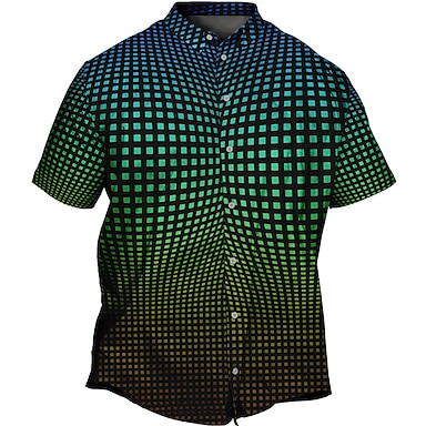 Herren Geometrisch Karo / Karomuster Hemd Knopfhemd Kurzarm Modisch lässig Outdoor Urlaub Streetwear Sommer Frühling Umlegekragen 3D-Druck Hemden mit Kragen Schwarz Rosa Armeegrün Blau Grün