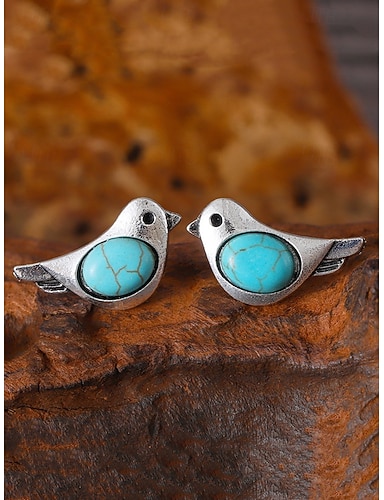 Türkisfarbene Vogel-Ohrstecker für Damen – Vintage-Tierschmuck aus Legierung für Naturliebhaber, zum täglichen Tragen oder Verschenken