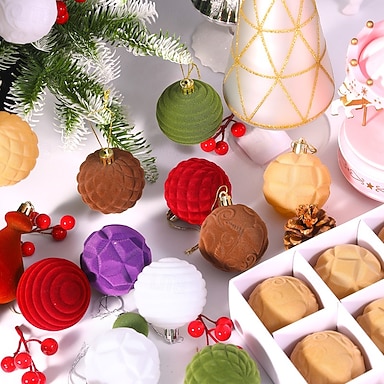 12-teiliges Set mit Weihnachtsornamenten aus Samt, 6 cm große beflockte Weihnachtskugeln, Kugeln in einzigartiger Form für Weihnachtsbaumschmuck, hängende Weihnachtsdekoration für Zuhause und Partys
