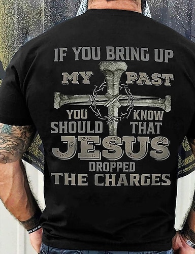 Männer's T-Shirt 'Jesus hat mein Leben gerettet' Christlicher Glaube Kurzarm Grafik Druck