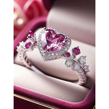 Herzförmiger Damenring mit rosa Edelstein – Legierungsmaterial, rosa und klare Steine, elegantes Design – perfekt für Hochzeiten und Valentinstag