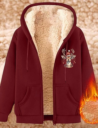 Herren Kapuzensweatshirt Vollreißverschluss-Kapuzensweatshirt Reißverschluss Kapuzensweatshirt Hoodie mit Fleecefutter Schwarz Wein Braun Grün Dunkelgray Mit Kapuze Rentier Tasche Sherpa-gefüttert