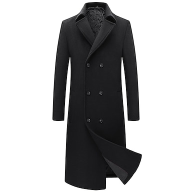 Herren Wintermantel Wollmantel Peacoat Geschäft Casual Frühling Herbst Winter Wollen warm Atmungsaktiv Oberbekleidung Bekleidung Brautkleider schlicht Feste Farbe Tasche Umlegekragen Doppelreihiger
