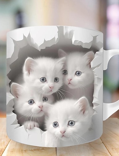 Tasse mit 3D-Druck, Kätzchen, Loch in einer Wand, Keramik-Kaffeetasse mit Katzenmotiv, 3D-Neuheits-Katzenbecher, Katzenliebhaber-Kaffeetasse, Katzenclub-Tasse, weiße Keramiktasse, Geschenke für Männer und Frauen