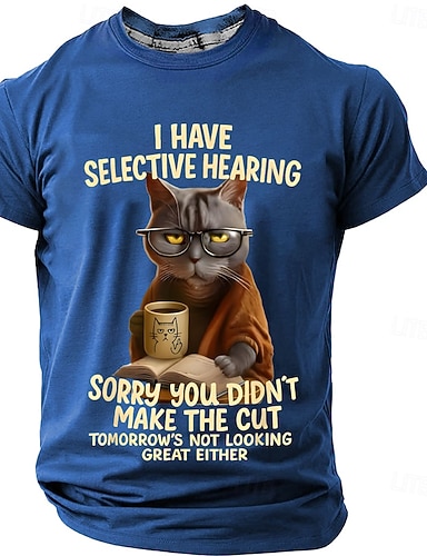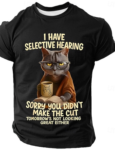 Männer Kurzarm Grafik T-Shirt "Es ist in Ordnung mir geht's gut alles ist in Ordnung" Lustiger gestresster Katzenprint