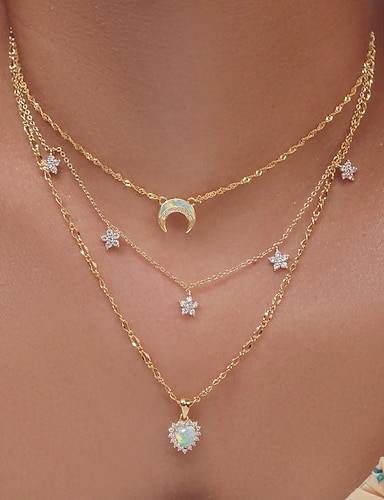 1 Stück Ketten Geschichtete Halskette For Damen Klar Hochzeit Partyabend Geschenk Aleación MOON Herz Stern