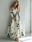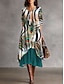 Damen Midikleid A Linie Kleid Urlaub Lässig Normale Passform Blumen Grafik Langarm V Ausschnitt Grün Sommer Frühling Herbst Winter