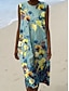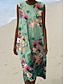 Damen Midi Kleid Leinenähnliches Shift Kleid Urlaub Freizeit Ausgehen Reguläre Passform Floral Grafik Ärmelos Rundhalsausschnitt Blau Gelb Lila Grün Sommer Frühling