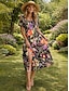 Damen Midikleid T-Shirt-Kleid A Linie Kleid Sommerkleid Urlaub Lässig Strand Lässiger Schnitt Blumen Grafik Kurzarm Rundhalsausschnitt Schwarz Purpur Orange Grün Sommer Frühling